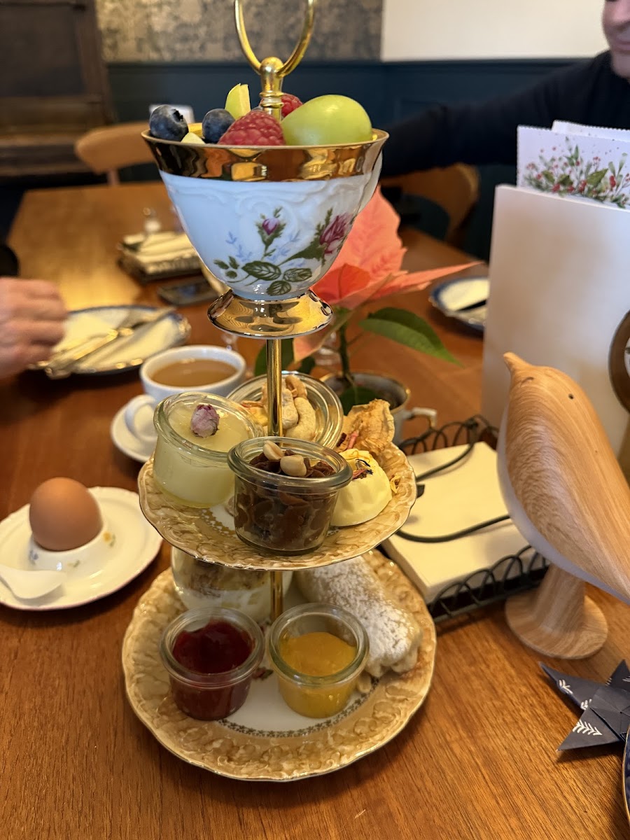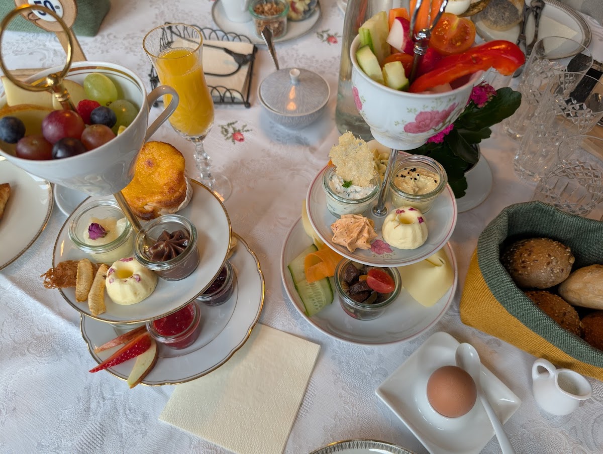 The café’s breakfast offerings are substantial and thoughtfully assembled, featuring a variety of homemade spreads, jams, and creams presented on delicate tiered platters. Whether you prefer a savory or sweet start to your day, the options cater well to different tastes, including vegetarian choices. The Schwarzwälder Kirsch Torte and other cakes deliver on the promise of indulgence with their careful presentation and flavor balance, pleasing both traditional and vegan visitors.